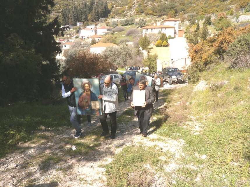 Μετά την Θεία Λειτουργία τα ξύλινα εικονίσματα, μεταφέρονται εν πομπή από τον Άγιο Ταξιάρχη, την παλαιότερη και ιστορικότερη εκκλησία της περιοχής, στα «Μαζίδια» όπου βρίσκεται το γραφικό εξωκλήσι των Αγίων Ραφήλ, Ειρήνης και Νικολάου. Εκεί, τελείται αγιασμός για την αρχή της νέας καλλιεργητικής περιόδου και στη συνέχεια αφού οι πιστοί προσκυνήσουν τις εικόνες εν πομπή επιστρέφουν στον Άγιο Ταξιάρχη.